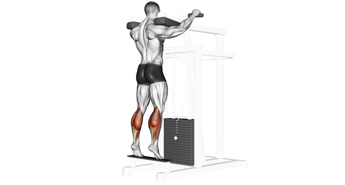 Підйом на ікри в тренажері стоячи - вправа, яка має на меті розвиток литкових м'язів ніг. Існує велика кількість варіантів, але основною є вправа, що виконується в спеціальному тренажері і вважається базовою, так як статичне навантаження лягає на безліч м'язів стабілізаторів. Встановіть необхідну вага в тренажері і встаньте на платформу поклавши валики на плечі. Стопи повинні розташовуватися паралельно на невеликій відстані один від одного. На платформі знаходиться тільки носок, приблизно 2/3 стопи тримається на вазі. Випряміть тіло і ноги вертикально. Не згинайте коліна. Дивіться перед собою або трохи вище. На видиху підніміться на носках вгору наскільки зможете. Після секундної затримки опустіться вниз концентруючись на розтягуванні м'язів литок наскільки дозволяє ваша гнучкість. Повторіть рух потрібну кількість разів. Не згинайте ноги в колінах, перетворюючи вправу в присідання. Не округлюйте спину, це небезпечно для хребта.