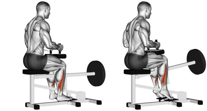 Підйом на ікри сидячи в тренажері - традиційно використовується в фітнесі та бодібілдингу для тренування литкових і камбаловидних м'язів. Вправа універсальна і підходить як новачкові, так і досвідченому спортсмену. Підйоми на носки можна виконувати з різним обладнанням в залі або в домашніх умовах. Підйом на носки сидячи зміщує акцент навантаження на камбаловидні м'язи. Вправа може виконуватися в тренажері або зі штангою, бліном або гантелею на колінах. У разі тренажера все досить просто: виставите необхідну вагу, сядьте в тренажер і підставте коліна під валики. Розпрямляйте і згинайте гомілкостоп потрібну кількість разів.