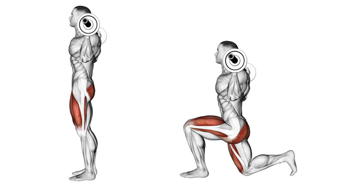 Випади з штангою - це класична вправа для розвитку стегон і сідничних м'язів, що застосовується поряд з присіданнями і жимами ногами. Ефективність випадів підтверджують багато спортсменів, вправа незмінно фігурує в тренувальних програмах на нижню частину тіла, і часто згадується в книгах з фітнесу та бодібілдингу. Під час руху працюють: квадріцепси, задня поверхня стегна і напівперетинчастий м'яз. Таким чином, основна користь випадів полягає в комплексному розвитку м'язів ніг і сідниць. Варто сказати і про те, що вправа досить варіативна. Тобто, змінюючи ширину кроку, ви можете зміщувати акцент навантаження в бік квадріцепсів або сідничних м'язів. Крім того, випади підсилюють кровообіг в області тазу, що благотворно позначається на стані внутрішніх органів. Дівчатам вправа допоможе впоратися з проявами целюліту. За принципом рівноваги, з користі вправи випливають і протипоказання до її застосування. Випади добре тренують м'язи завдяки тому, що дозволяють створити на них значне навантаження. Але саме це навантаження може виявитися згубним для суглобів, особливо колінних. У разі нещасного випадку або будь-яких больових відчуттях в колінах, виконання випадів протипоказано. Якщо коліна у вас здорові, щоб не отримати травму роблячи вправи, строго дотримуйтеся техніки. А саме - не виводьте коліно передньої ноги за лінію носка (це створює травматичне навантаження) і не стукайте коліном опорної ноги об підлогу. Помістіть гриф штанги на плечі трохи нижче шиї. Випрямте спину, розправте груди, поставте стопи трохи ширини плечей. Зробіть широкий крок вперед і зафіксуйте положення. Робоча нога повинна стояти на повній стопі, а опорна тільки на носку. Ширину кроку вибирайте виходячи з того, що при згинанні коліно передньої ноги повинно утворювати прямий кут. З опорною ногою все не так жорстко. Можна поставити її ближче до передньої, так, щоб її коліно також згиналося під прямим кутом. У цьому випадку основне навантаження при виконанні вправи отримає квадріцепс. Якщо ж опорну ногу відставити подалі, і кут в її коліні буде більше 90 градусів, ви змусите більшою мірою працювати сідницю. З вихідного положення на вдиху опустіться в випад. Слідкуйте за тим, щоб коліно робочої ноги не виходило за лінію носка, а коліно опорної не билося об підлогу. Ви повинні відчути розтягування задньої поверхні стегна і сідниці. Спина під час виконання руху залишається прямою, в попереку зберігається природний прогин. На видиху за рахунок зусилля м'язів робочої ноги виштовхніть себе наверх. Рухи повинні бути пружними і м'якими, без ривків. Повторіть потрібну кількість разів і поміняйте робочу ногу.