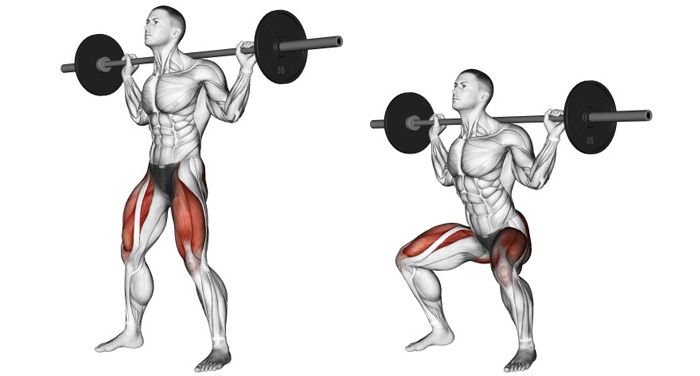 Присідання з штангою - це ключова силова вправа для розвитку м'язів ніг і одна з п'яти базових багатосуглобних вправ. При виконанні присідань зі штангою в роботу включається практично вся нижня частина тіла, починаючи від м'язів сідниць і стегон, закінчуючи литками, а також мускулатура корпусу, абдомінального пресу і нижньої частини спини. Перед виконанням присідань необхідно ретельно розім'ятися. Для цієї мети підійде легке кардіо протягом 5 хвилин, а також вправи для розігріву на всі групи м'язів. Встаньте позаду грифа і візьміться за нього руками, симетрично центру. Піднирніть під гриф і підіпріть його своїми трапеціями. Розпряміться і прийміть на себе всю вагу штанги. Зробіть крок назад. Повністю зберіться і налаштуйтеся на вагу. Не думайте про ноги, а контролюйте роботу всього тіла. Поставте ступні на рівні трохи ширше плечей, а носки розгорніть назовні. Зробіть потужний вдих, що дозволяє розправити грудну клітку і надати додаткову опору хребту. Рух починається з подачі таза назад - як ніби ви хочете сісти на невидимий стілець. Глибина присідання може бути як до паралелі з підлогою, так і нижче. Новачкам рекомендується починати присідати саме до рівня, коли біцепси стегон паралельні підлозі. Під час присідання погляд спрямований прямо, а спина перебуває в ідеально рівному положенні. У верхній точці вправи не розгинайте повністю колінні суглоби, а тримайте їх трохи зігнутими. Це зніме травмонебезпечне навантаження з колін. Вдихніть і приступайте до наступного повтору.