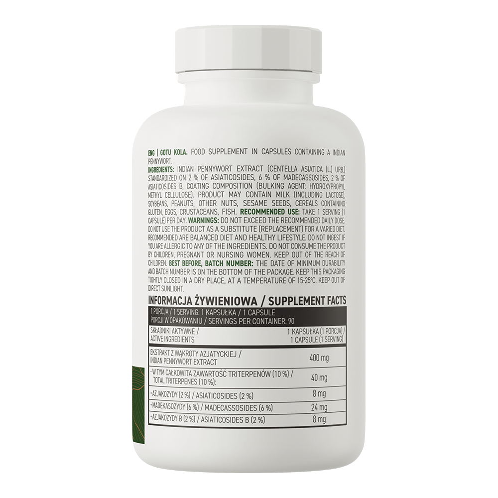 Екстракт центелли азіатської відомий своєю здатністю підтримувати стан шкіри, сприяти нормальній роботі пам’яті, кровоносної та травної систем. Gotu Kola часто використовується як природний адаптоген для підтримки організму в умовах щоденного стресу.